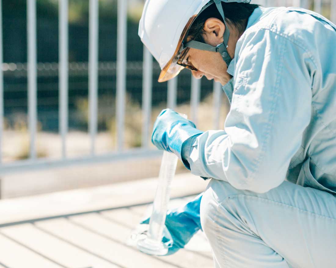作業従事者の徹底した衛生管理の下、貯水槽中に立入り清掃・洗浄・消毒をしていきます。また本体以外にもポンプ等の部品に故障がないかの点検、水質に異常がないかの検査をいたします。飲料水にも使われる水なので、利用者の安全を第一に徹底した衛生管理を行っております。