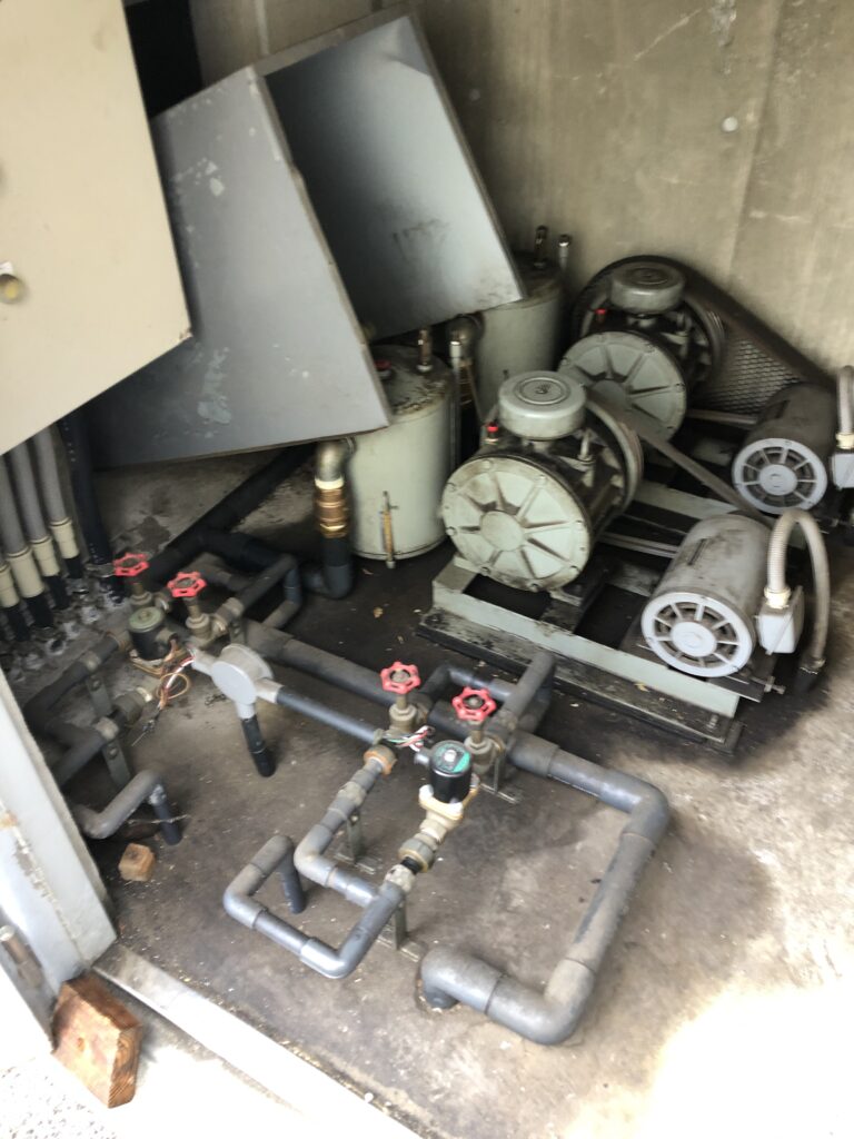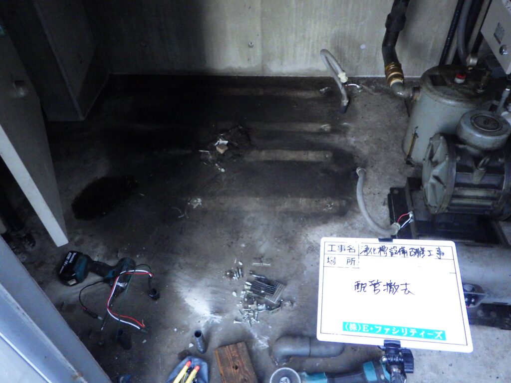 今回の工事は、高齢者介護施設にある中大型合併処理浄化槽のブロワを高効率ブロワへ改修する工事を行いました。既設のブロアや配管を撤去し、最新型のブロアを取り付け配管し直しております。