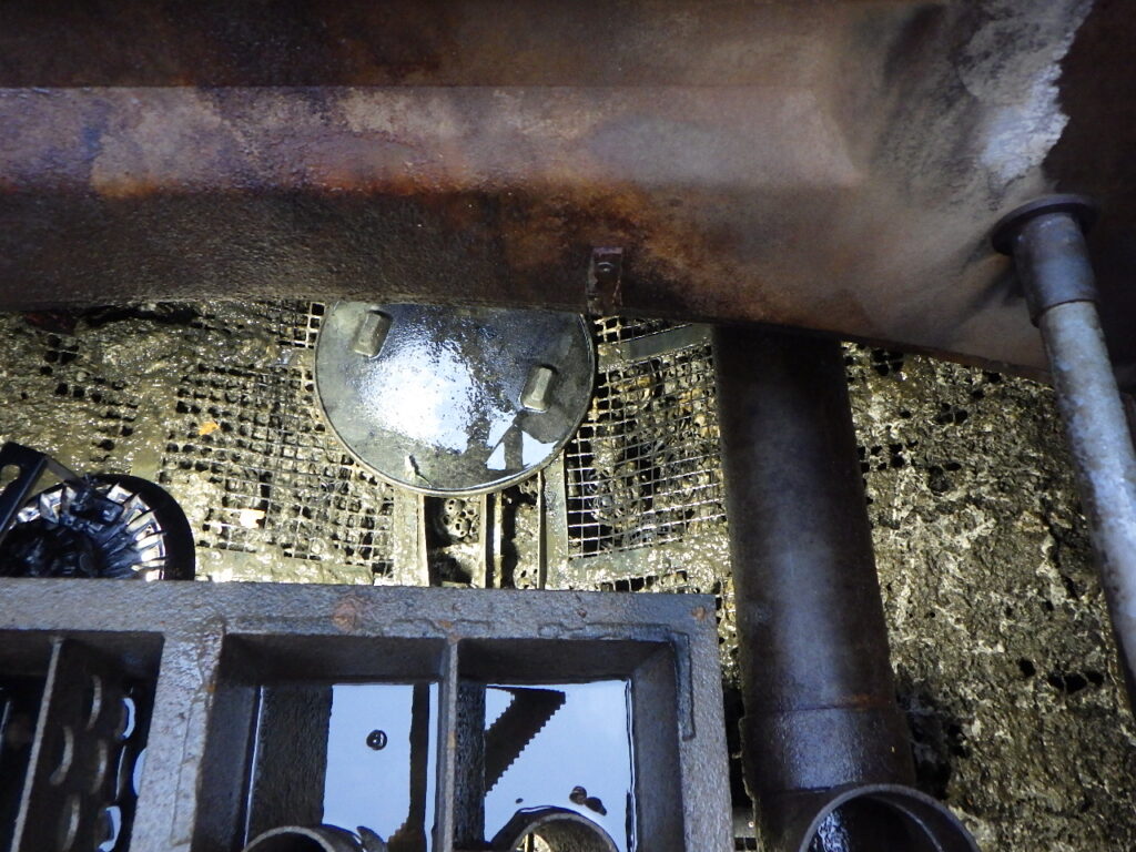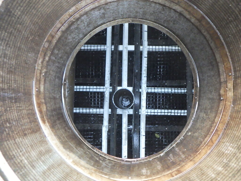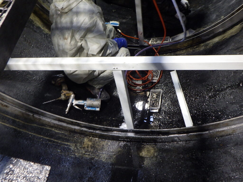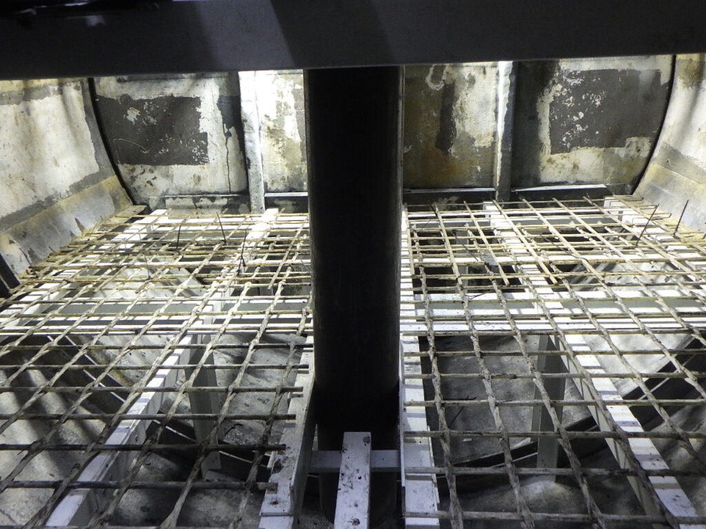 受け架台を作成後、格子ろ材受けを設置し、槽内にろ材を戻し入れ作業が完了しました。