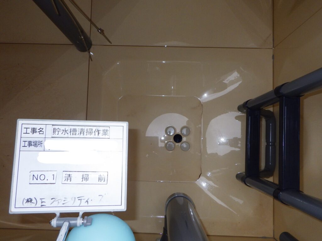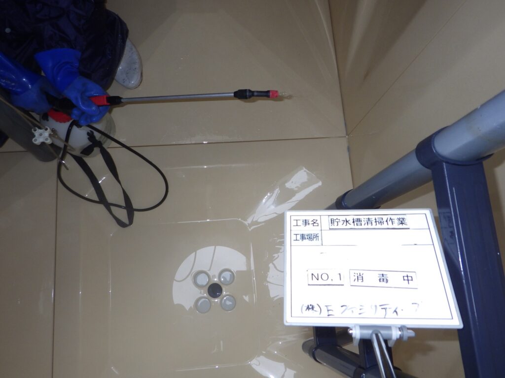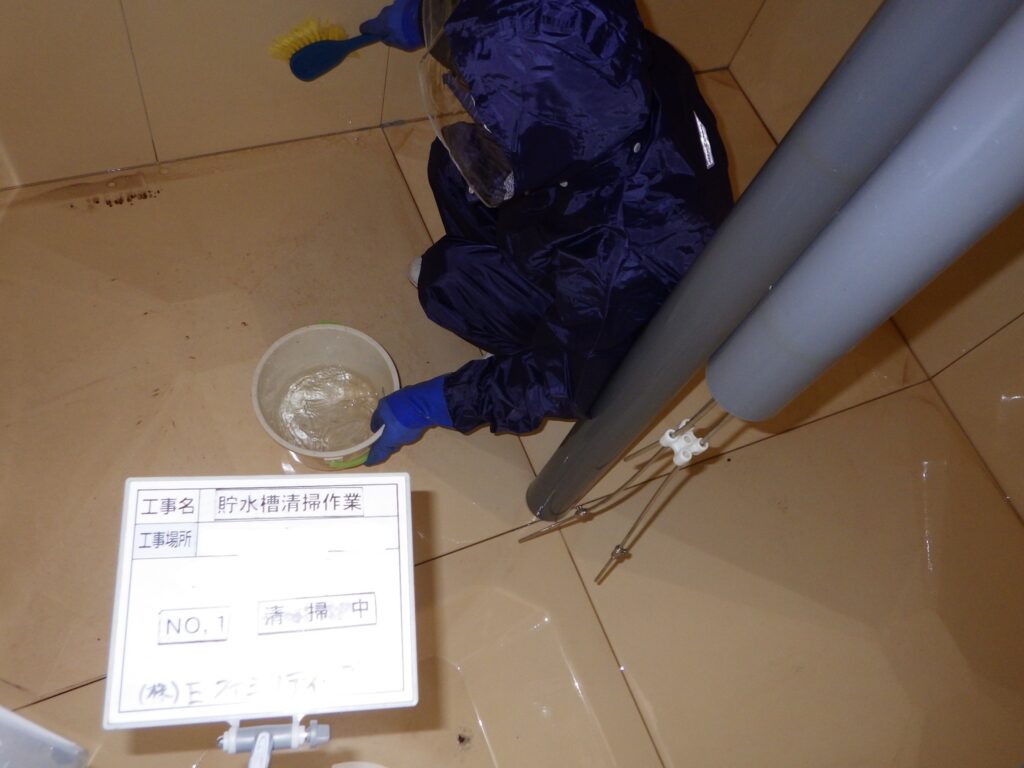 貯水槽中に入り清掃・洗浄・消毒をしていきます。